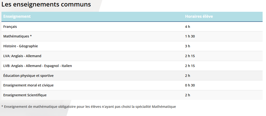 Les spécialités et option proposées en classe de 1ère générale